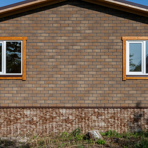 Плитка гибкая битумная для фасада Технониколь Хауберг коллекция Кирпич цвет Песчаный размеры 1000х250х3мм (в упаковке 20 штук общей площадью 2 м2).