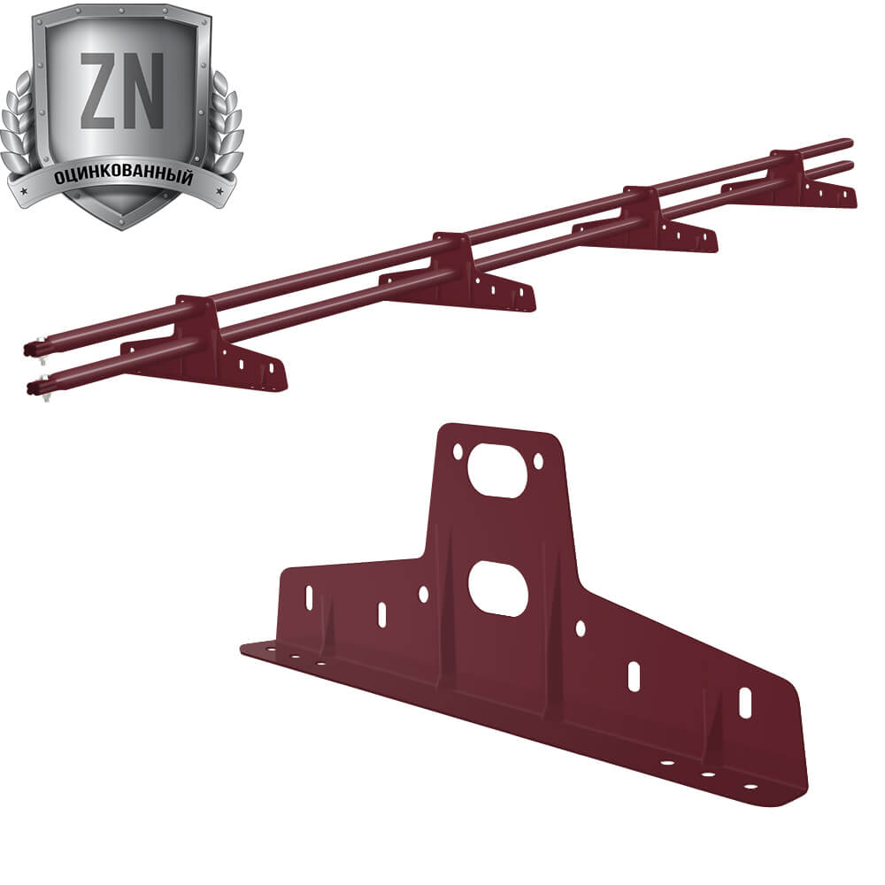 Снегозадержатели трубчатые универсальные СТАНДАРТ 45х25мм оцинкованные с плоскоовальными трубами сечением 45х25мм, длина 3 метра (4 опоры, крепеж в комплекте) цвет RAL 3005 Красное вино предотвращают лавинообразный сход больших масс снега и льда со скатной кровли, защищая людей, автомобили, постройки и посадки вокруг дома в Архангельске. Обеспечивают правильную работу водосточной системы — снег и лед не забивают желоба и трубы, что позволяет беспрепятственно отводить с крыши воду.