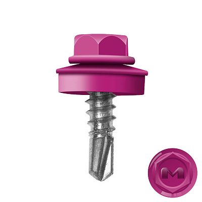 Кровельные саморезы Daxmer (Даксмер) по металлу цветом RAL4006 Пурпурный 5,5*19мм имеют частую резьбу, а специальная металлическая шайба с ЕРDМ-уплотнителем 2,8 мм обеспечивает плотное прилегание профилированного металла (кровли) к обрешетке, а также препятствует попаданию влаги. Также ЕРDМ-уплотнитель защищает от перепада температур (за счет высокого содержания каучука), который адаптируется под окружающую температуру и не позволяет кровле или забору «гулять», плотно прижимая листы к основанию.