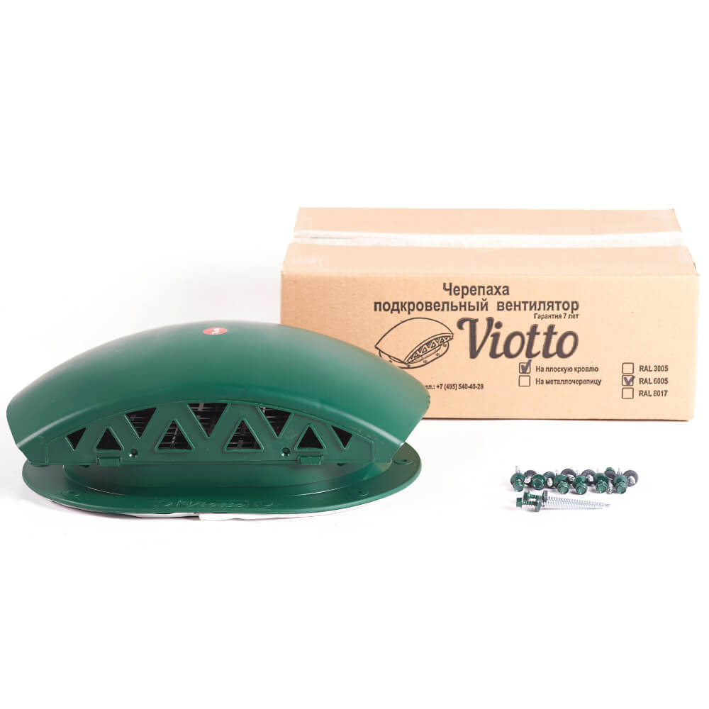 Подкровельный вентилятор "Черепаха" Viotto RAL 6005 Зеленый Мох для готовой мягкой и фальцевой кровли в Архангельске