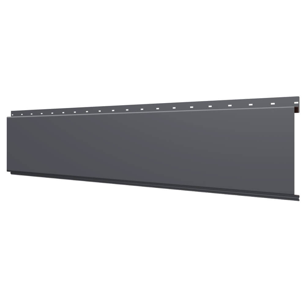 Линеарная потолочно-стеновая панель ГЛАДКАЯ цвет RAL7024 Серый Графит применяется в качестве софитов для подшивы крыши, наружной и внутренней отделки потолков, стен, фронтонов фасада дома в Архангельске.