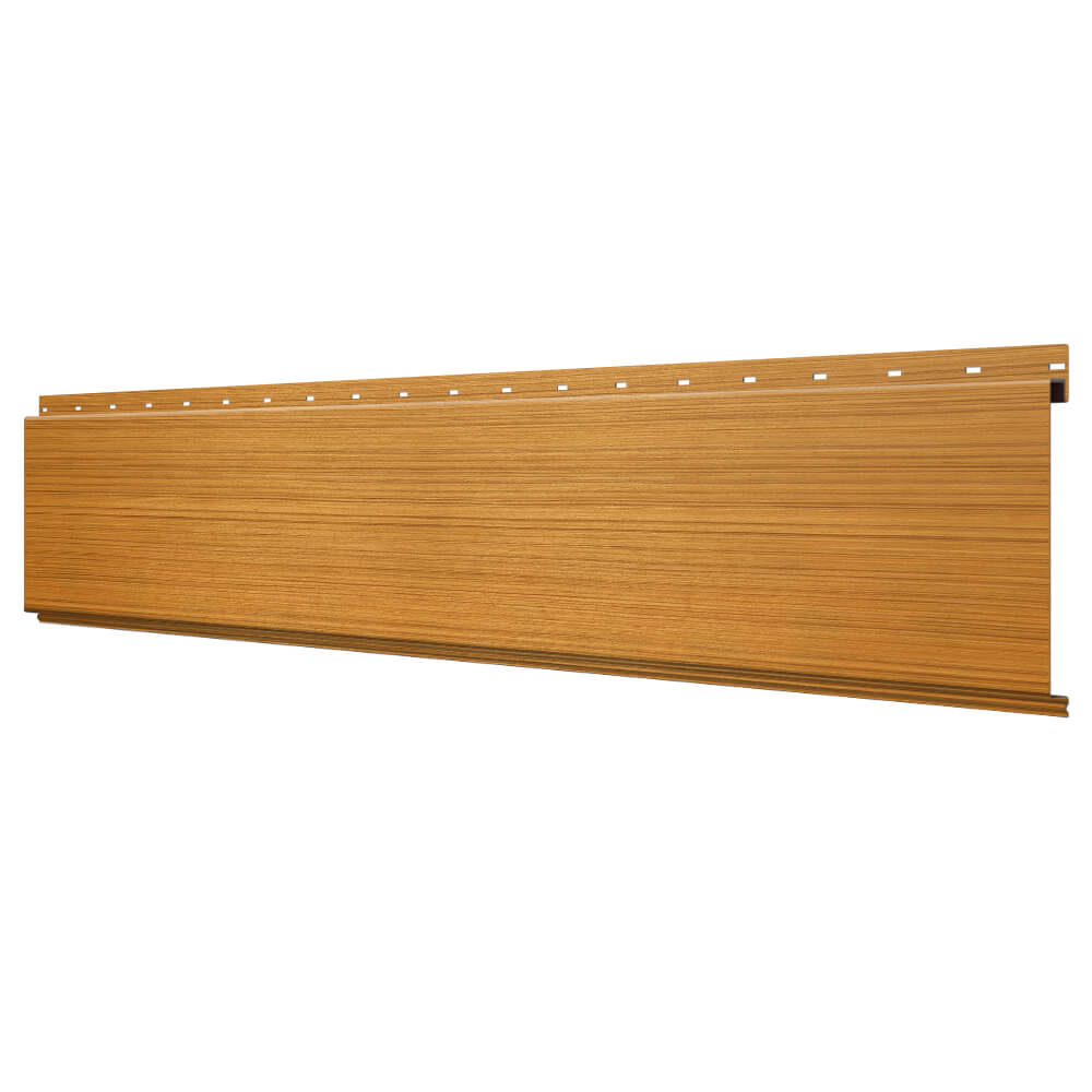 Линеарная потолочно-стеновая панель ГЛАДКАЯ цвет под дерево Тик Printech Корея применяется в качестве софитов для подшивы крыши, наружной и внутренней отделки потолков, стен, фронтонов фасада дома в Архангельске.