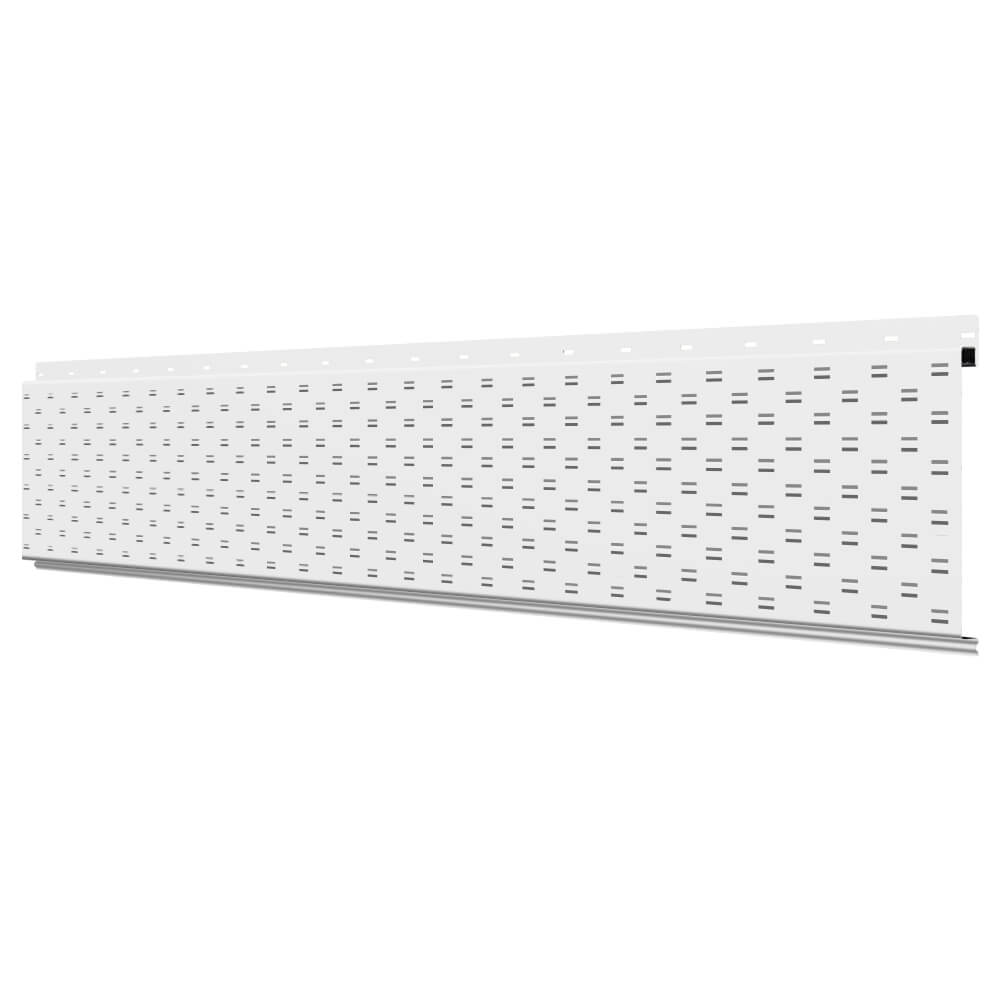 Линеарная потолочно-стеновая панель с ПЕРФОРАЦИЕЙ для вентиляции цвет RAL9003 Белый применяется в качестве софитов для подшивы крыши, наружной и внутренней отделки потолков, стен, фронтонов фасада дома в Архангельске.