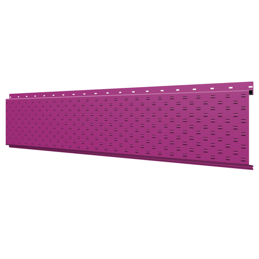 Линеарная потолочно-стеновая панель с ПЕРФОРАЦИЕЙ для вентиляции цвет RAL4006 Пурпурный применяется в качестве софитов для подшивы крыши, наружной и внутренней отделки потолков, стен, фронтонов фасада дома в Архангельске.