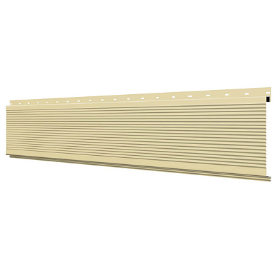 Линеарная потолочно-стеновая панель РИФЛЕНАЯ усиленная цвет RAL1014 Бежевый применяется в качестве софитов для подшивы крыши, наружной и внутренней отделки потолков, стен, фронтонов фасада дома в Архангельске.