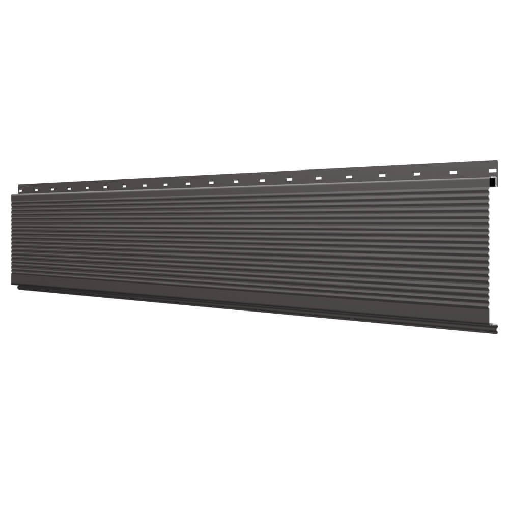 Линеарная потолочно-стеновая панель РИФЛЕНАЯ усиленная цвет RAL8019 Темный Шоколад применяется в качестве софитов для подшивы крыши, наружной и внутренней отделки потолков, стен, фронтонов фасада дома в Архангельске.