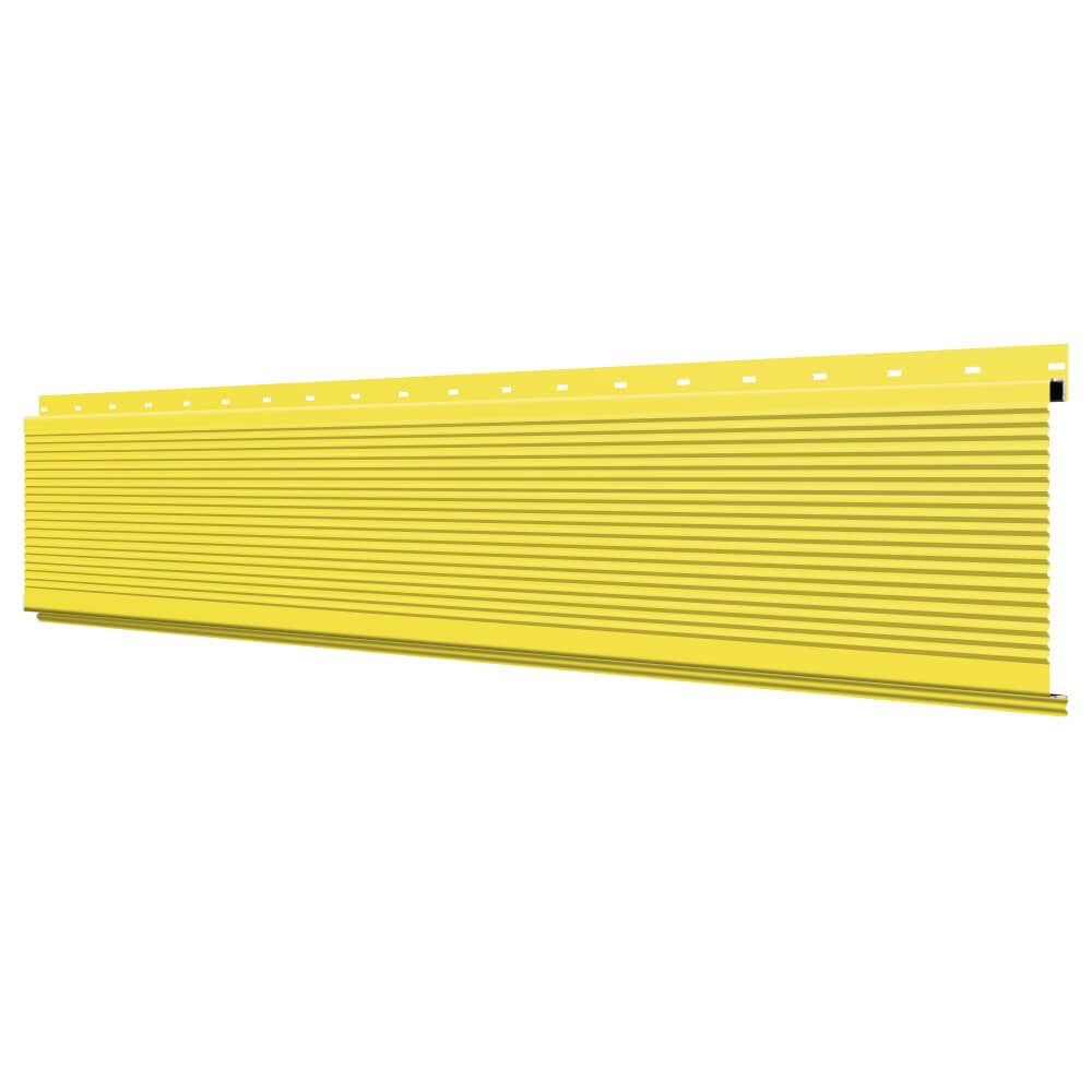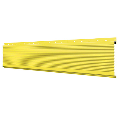 Линеарная потолочно-стеновая панель РИФЛЕНАЯ усиленная цвет RAL1018 Желтый применяется в качестве софитов для подшивы крыши, наружной и внутренней отделки потолков, стен, фронтонов фасада дома в Архангельске.
