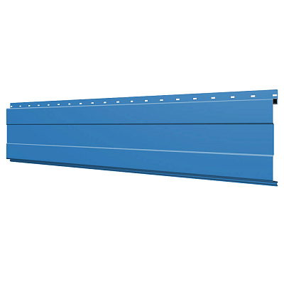 Линеарная потолочно-стеновая панель с ПОЛОСОЙ усиленная цвет RAL5015 Небесно-Голубой применяется в качестве софитов для подшивы крыши, наружной и внутренней отделки потолков, стен, фронтонов фасада дома в Архангельске.