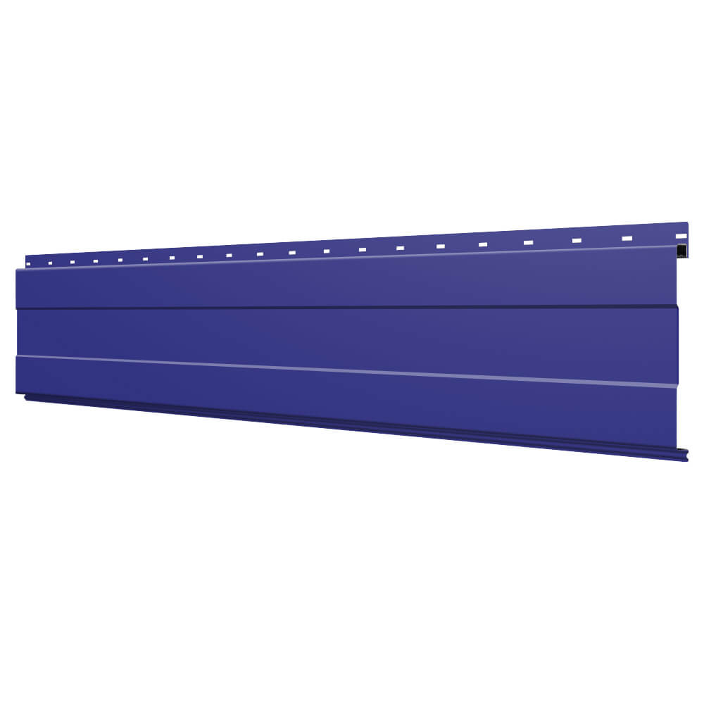 Линеарная потолочно-стеновая панель с ПОЛОСОЙ усиленная цвет RAL5002 Синий Ультрамарин применяется в качестве софитов для подшивы крыши, наружной и внутренней отделки потолков, стен, фронтонов фасада дома в Архангельске.