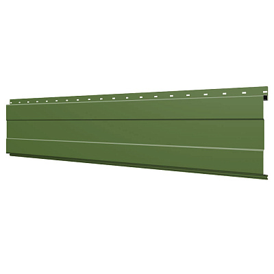 Линеарная потолочно-стеновая панель с ПОЛОСОЙ усиленная цвет RAL6002 Зеленый Лист применяется в качестве софитов для подшивы крыши, наружной и внутренней отделки потолков, стен, фронтонов фасада дома в Архангельске.