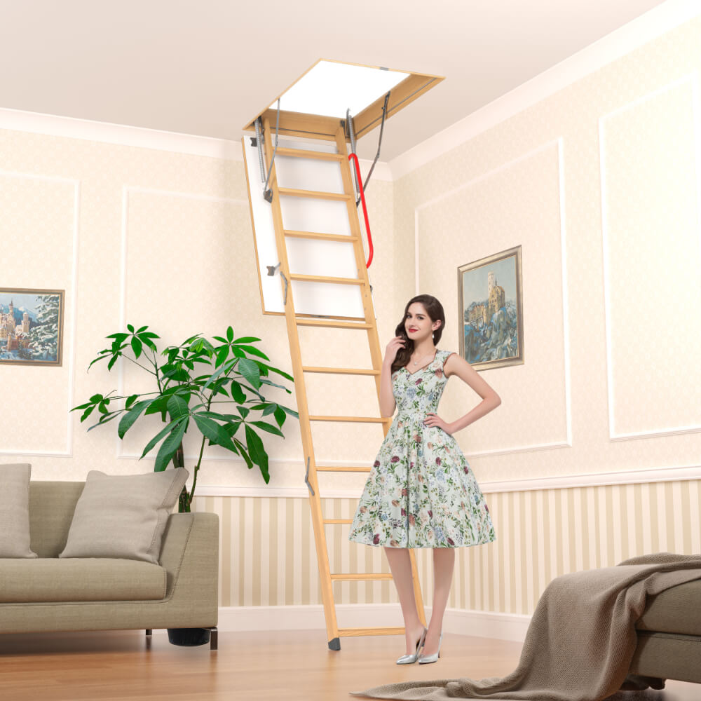 Лестница PREMIUM сделает подъем на чердак безопаснее и сэкономит пространство в частном доме. Чтобы подняться на чердак, откройте люк ключом (который поставляется в комплекте) и разложите откидные секции.