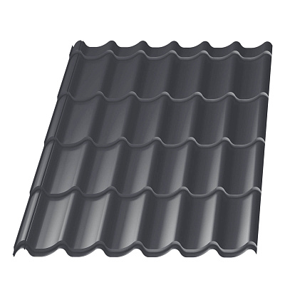 Металлическая черепица Меркурий цвет RAL 7024 Серый Графит имеет профиль внешне на кровле напоминающий классическую керамическую черепицу. Меркурий — это обновленный аналог профиля металлической черепицы для кровли крыши. Форма профиля имеет богатый внешний вид напоминающий небольшие набегающие волны. Лучшие показатели герметизации сделали профиль Меркурий гарантом стабильной и долговременной службы на крышах в Архангельске. Данный профиль отличается не только своим качеством и практичностью, но и благородным внешним видом.