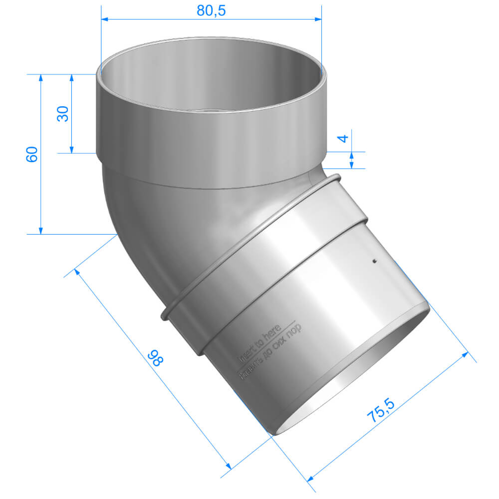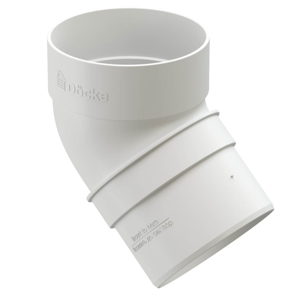 Колено трубы 45 градусов ДЕКЕ STANDARD d80мм цвет RAL 9003 Белый в Архангельске - предназначено для обеспечения перехода от воронки к трубе. Колена соединяют между собой отрезком трубы необходимой длины.