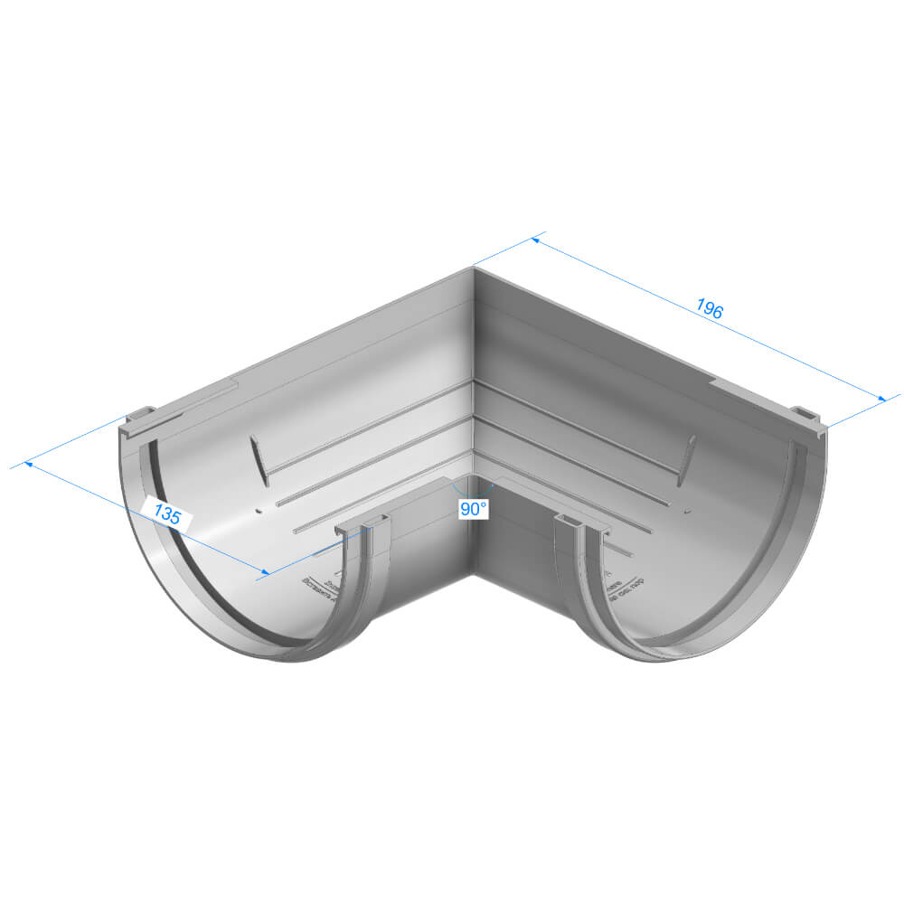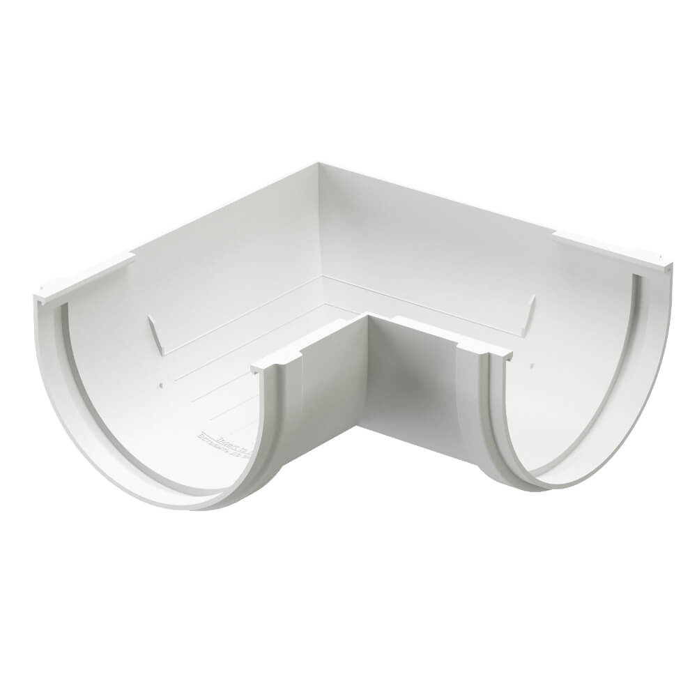 Угловой элемент желоба универсальный ДЕКЕ STANDARD d120мм 90 градусов цвет RAL 9003 Белый в Архангельске. Угловые элементы устанавливаются как на внешних, так и на внутренних углах кровли и предназначены для соединения желобов.