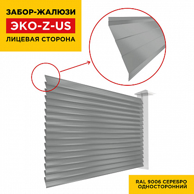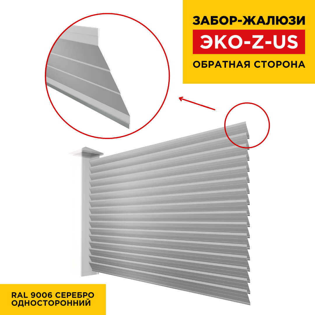 Ламель металлическая Z-образная усиленная ЭКО-Z-US, цвет RAL 9006 Серебро, длина любая кратно 1см под заказ - для забора-жалюзи, беседки, перголы в Архангельске