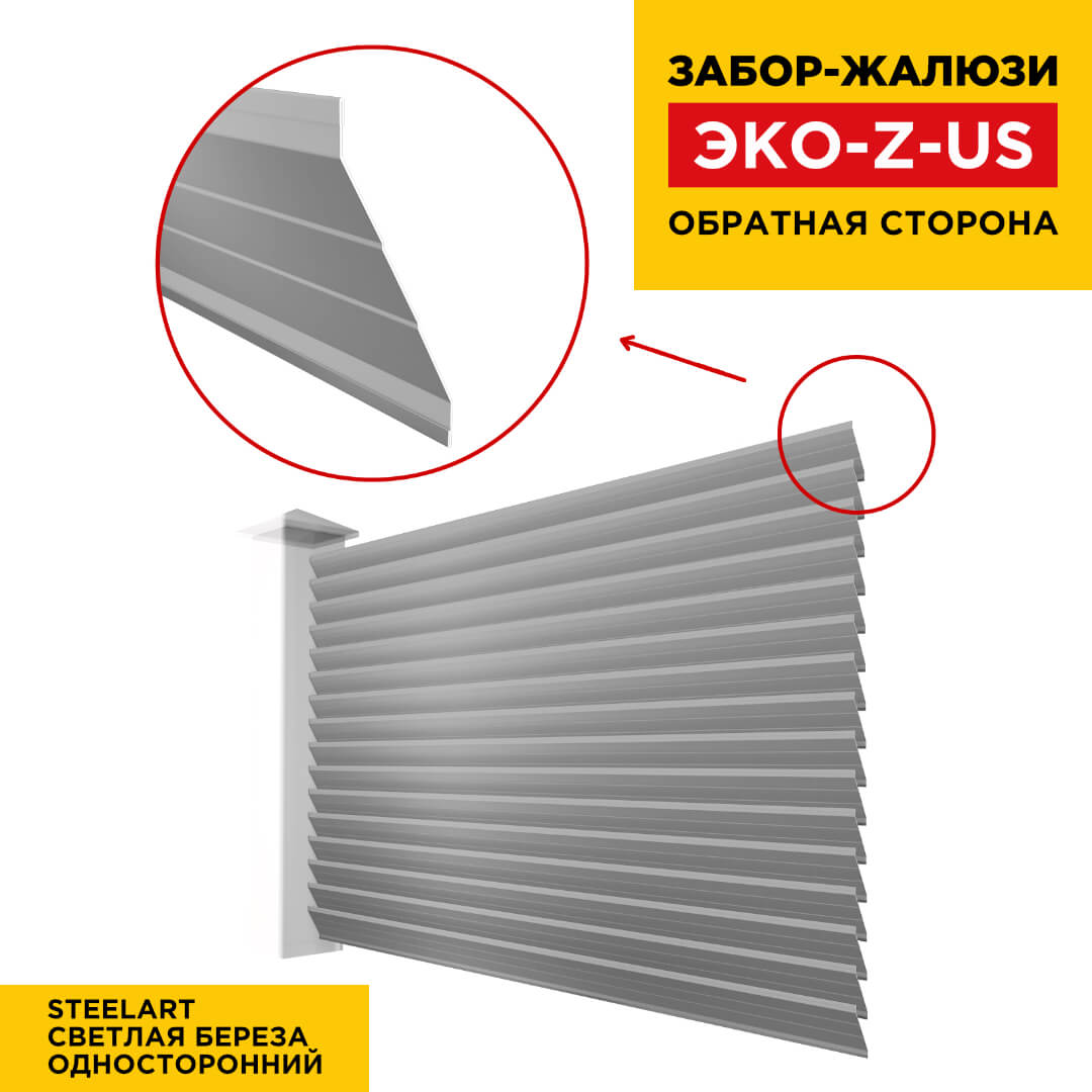 Ламель металлическая Z-образная усиленная ЭКО-Z-US, цвет под дерево Светлая Береза SteelArt одностороннее покрытие, длина любая кратно 1см под заказ - для забора-жалюзи, беседки, перголы в Архангельске