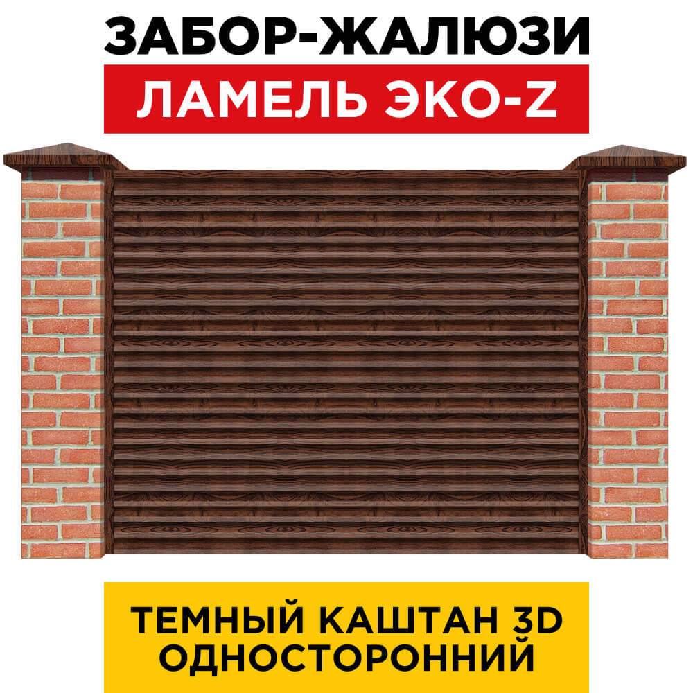 Ламель металлическая Z-образная простая ЭКО-Z, цвет под дерево Темный Каштан 3D Принтек одностороннее покрытие, длина любая кратно 1см под заказ - для забора-жалюзи, беседки, перголы в Архангельске.