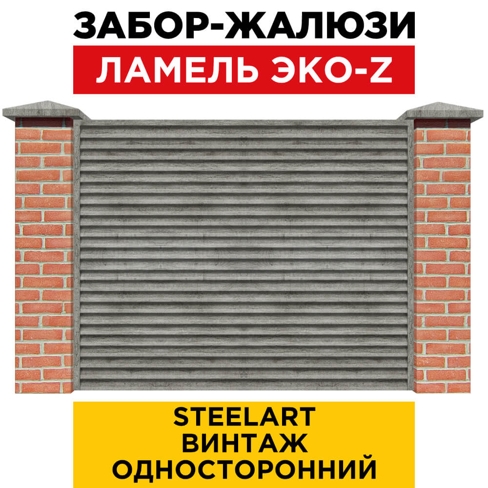 Ламель металлическая Z-образная простая ЭКО-Z, цвет под дерево Винтаж SteelArt одностороннее покрытие, длина любая кратно 1см под заказ - для забора-жалюзи, беседки, перголы в Архангельске