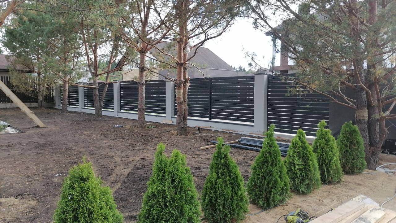 Фото-отчет забор из штакетника Эко-М цвет RAL 8017 коричневый шоколад