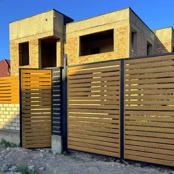 Готовый объект наглядно демонстрирует, как гармонично смотрится металлопланкен под дерево Светлый Дуб 3D Принтек в отделке ограждений. Металлический планкен под дерево реалистично передает фактуру натуральной древесины, сохраняя при этом все эксплуатационные свойства металла: долговечность, прочность и устойчивость к погодным условиям. Забор выглядит современно и стильно, создавая уютную атмосферу и подчеркивая естественный ландшафт участка, а также не требует сложного ухода в процессе эксплуатации.