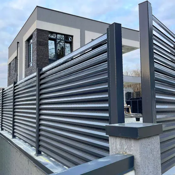 Забор-жалюзи ЭКО-Z-US в популярном цвете RAL7024/7024 Серый Графит двусторонний. Лаконичный дизайн жалюзи создаёт аккуратный и стильный фасад, а зазор между ламелями обеспечивает оптимальный баланс между приватностью и циркуляцией воздуха. Такое решение идеально вписывается как в современные архитектурные проекты, так и в классические ансамбли, подчёркивая статус и практичность участка.