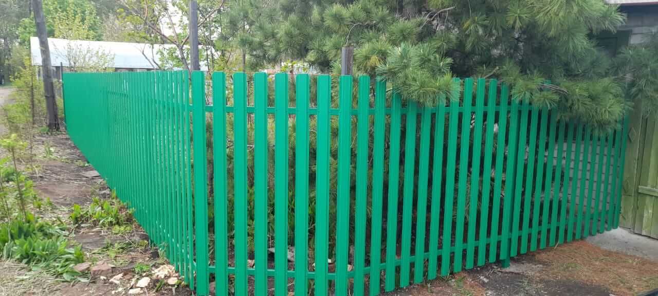 ✅ Забор установлен в городе: Магнитогорск ✅ Вид секции: горизонт ✅ Профиль штакетника: узкий п-образный 85мм ✅ Цвет и покрытие: RAL6029 Зеленая Мята