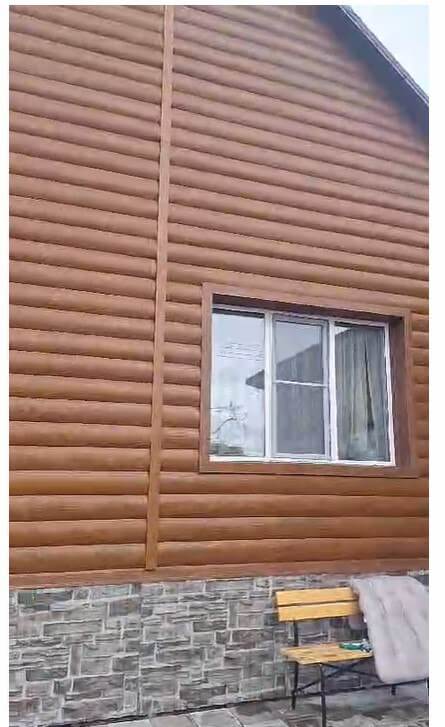 Сайдинг металлический Блок-Хаус под бревно дерево Кедр 3D Темный SteelArt фото Центр Металлокровли Фото сайдинга металлического (металлосайдинга) Блок-Хаус под бревно SteelArt Кедр Темный для фасада дома