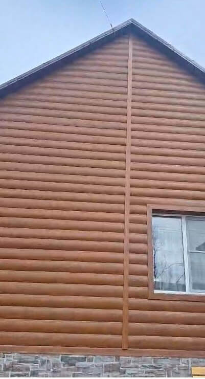 Отделка фасада дома металлическим сайдингом Блок-Хаус