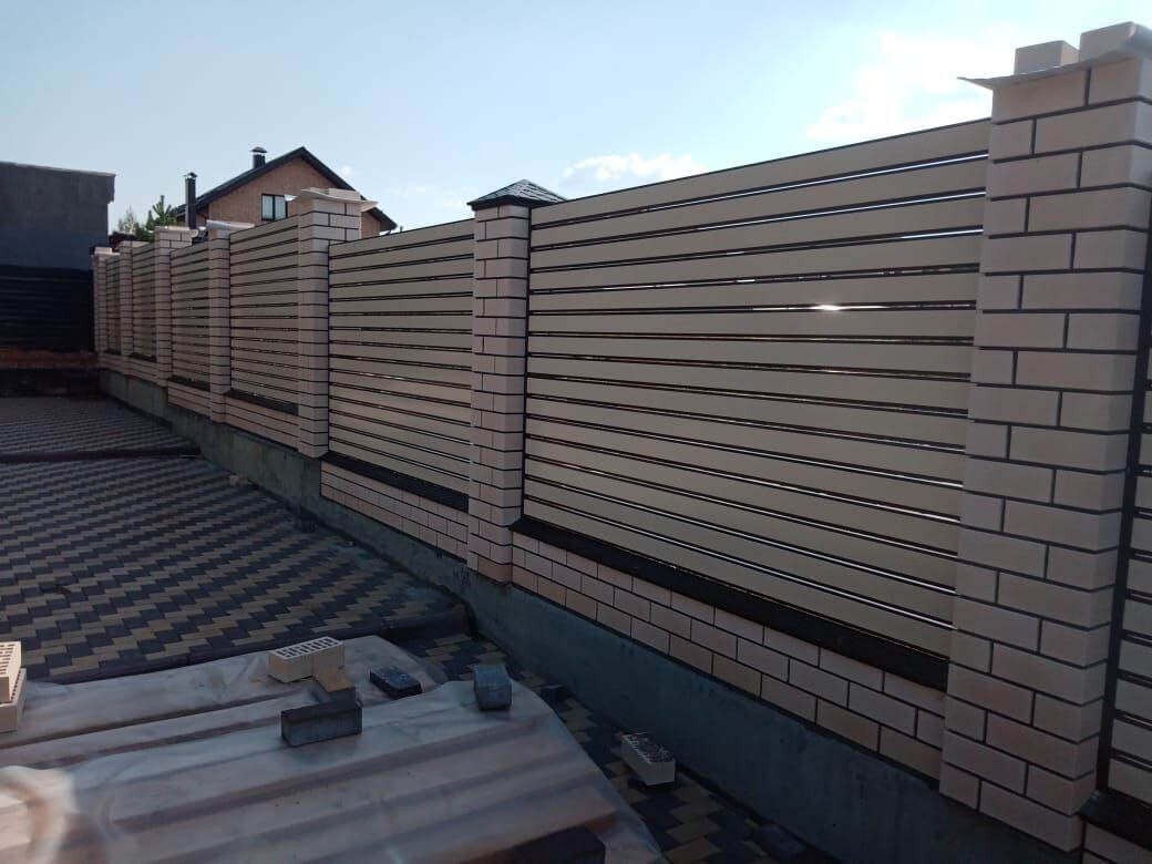 двухцветный забор из металлопланкена