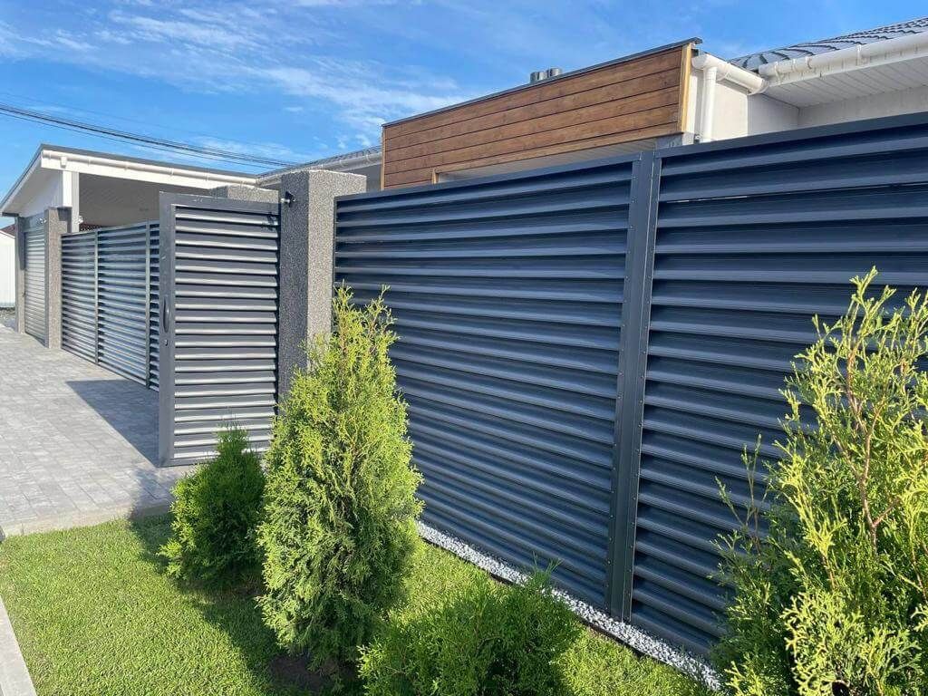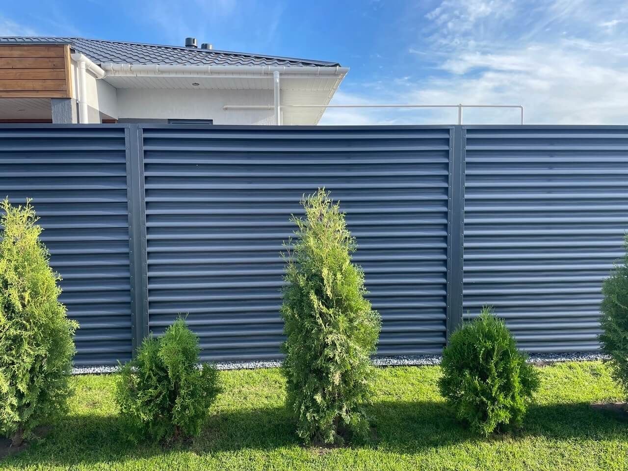 Ламель Еврожалюзи RAL7024 Серый Графит для заборов-жалюзи, беседок, пергол Секция забора жалюзи из ламелей еврожалюзи RAL7024 Серый Графит с кирпичными столбами анфас Секция забора жалюзи из ламелей еврожалюзи RAL7024 Серый Графит с кирпичными столбами Секция забора жалюзи из ламелей еврожалюзи RAL7024 Серый Графит с металлическими столбами анфас Секция забора жалюзи из ламелей еврожалюзи RAL7024 Серый Графит с металлическими столбами